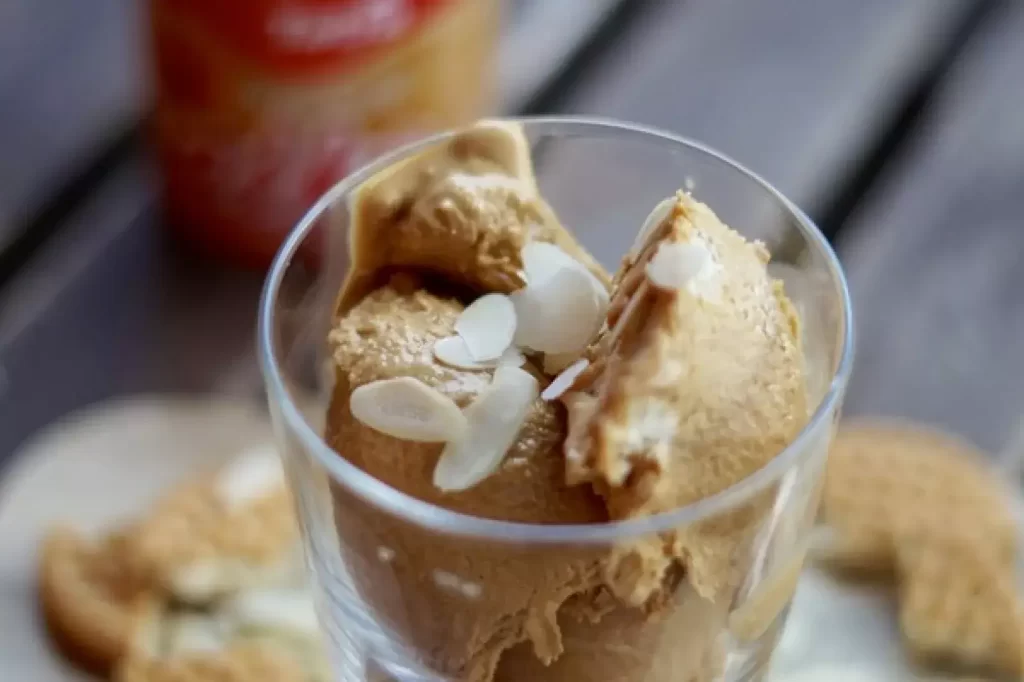 Karamelová zmrzlina se sušenkami a mandlemi