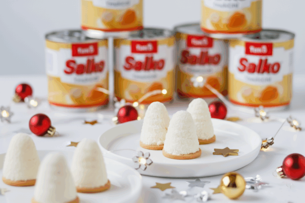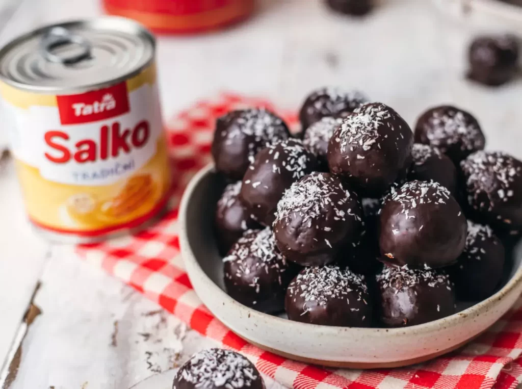 Ingredience 160 g sušeného kokosu 50 g rozpuštěného másla Tatra 1 lžička vanilkového extraktu 1 plechovka Salko tradiční Na polevu: 120 g hořké čokolády 40 g řepkového oleje kokos na ozdobu Postup 1. Kokos smíchejte s rozpuštěným máslem, vanilkovým extraktem a Salkem. Promíchejte do hladké a velmi lepivé směsi. 2. Dejte ztuhnout do lednice alespoň na 2 […]