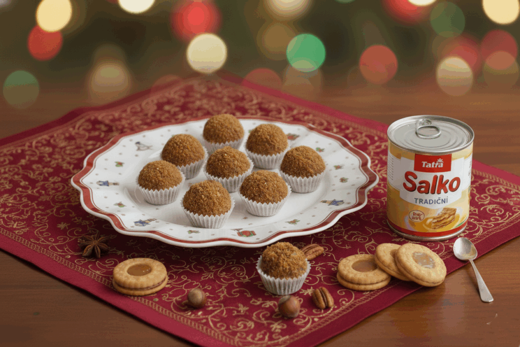 Ingredience 200 g karamelových sušenek 50 g oblíbených ořechů 100 g tradičního másla Tatra 1 lžička skořice 200 g Salko tradiční (polovina plechovky) Postup Karamelové sušenky rozmixujte s oříšky, část dejte bokem na obalování (asi dvě hrstě). Přidejte tradiční Salko, změklé máslo, skořici, smíchejte a nechte vychladit v lednici alespoň hodinu. Pak tvarujte kuličky a obalte ve směsi ze […]