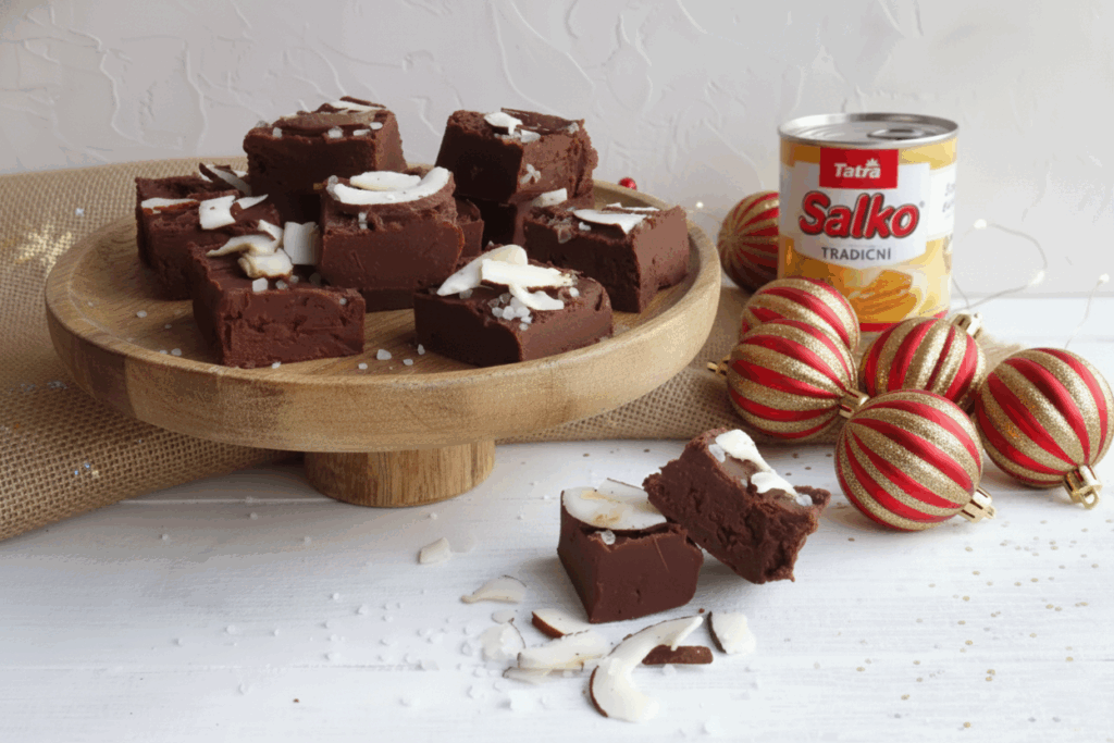 Ingredience 1 plechovka tradičního Salka 400 g hořké čokolády 1–2 lžíce másla Tatra Na ozdobení: hrubá mořská sůl kokosové plátky Postup Připravte si větší hrnec s vodou a kovovou misku. Směs na karamelky budete vařit ve vodní lázni. Vodu přiveďte k varu a poté lehce snižte teplotu, aby tolik nebublala. Zakryjte miskou a do ní nasypte nalámanou čokoládu, přidejte […]
